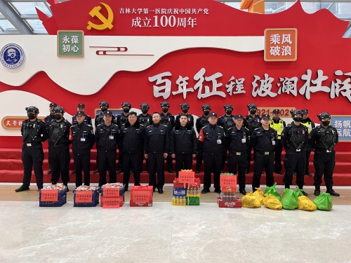 在吉林大學(xué)第三醫(yī)院,慰問(wèn)組對(duì)所有堅(jiān)守崗位的保安員們送上春節(jié)的慰問(wèn)和敬意。于總認(rèn)真聽取了駐勤保安隊(duì)長(zhǎng)對(duì)崗點(diǎn)春節(jié)期間人員配備、應(yīng)急預(yù)案等具體工作的情況匯報(bào)。于總強(qiáng)調(diào),春節(jié)期間,醫(yī)護(hù)工作者依然堅(jiān)守在工作崗位上,守護(hù)著人民群眾的生命健康與安全,我們更要做到毫不放松、嚴(yán)之再嚴(yán)、細(xì)之再細(xì),與醫(yī)院攜手并肩,以銅墻鐵壁之堅(jiān)保障醫(yī)院平安。